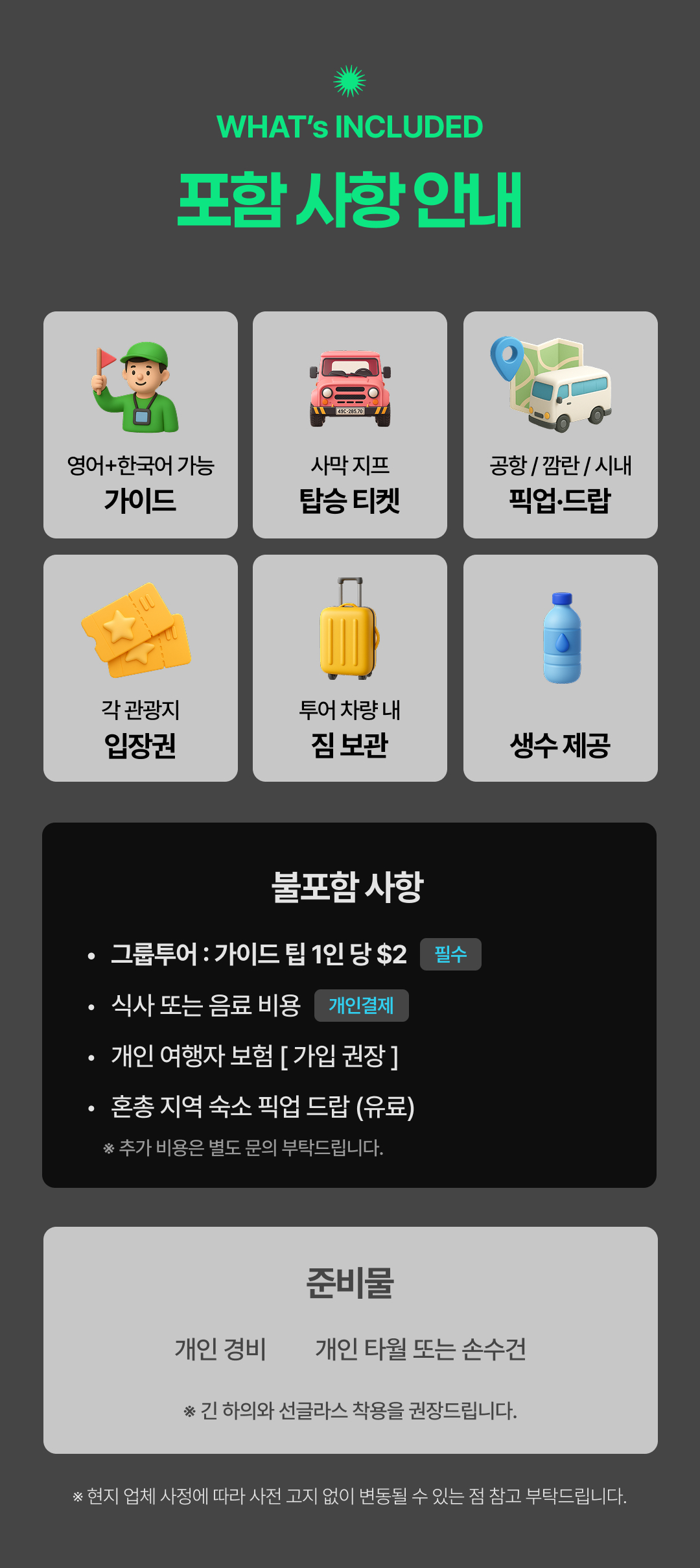 • 일반 투어 상품은 예약 확정까지 최대 24시간(영업일 기준) 소요될 수 있으며, 미확정 시 취소 요청이 가능합니다.