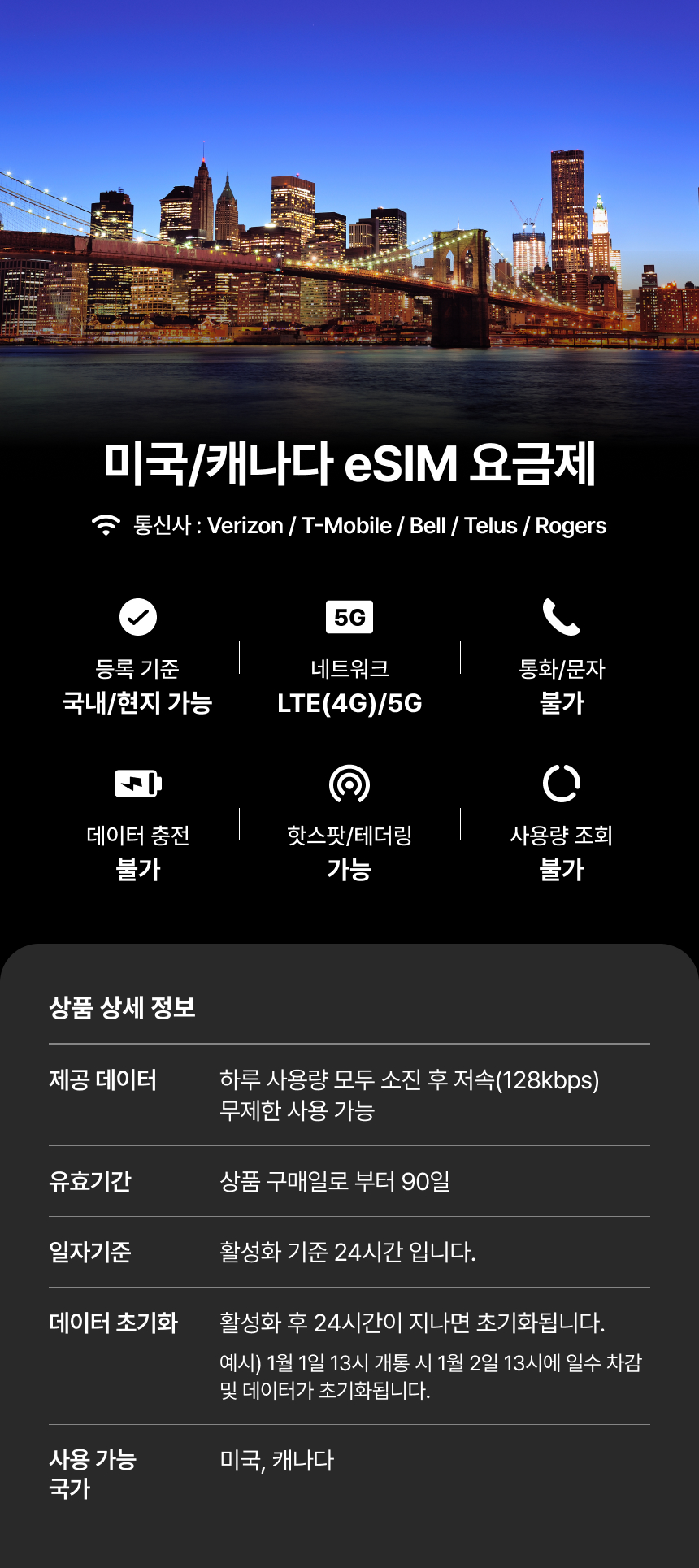 [미국] eSIM 데이터 무제한 (5GB)