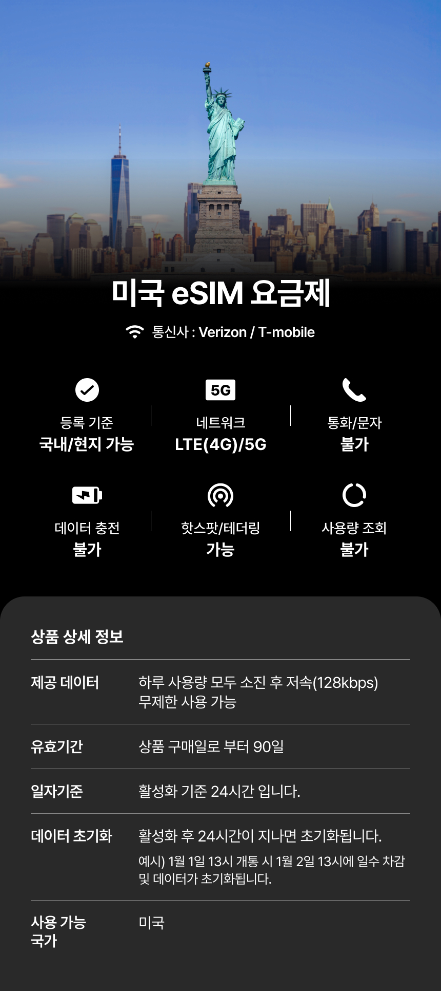 [미국] eSIM 데이터 무제한 (5GB)