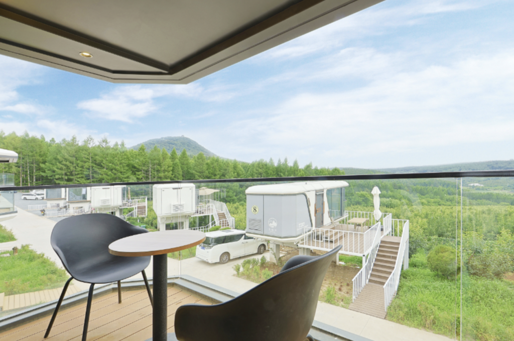 호텔 드랍 모아산 전경이 내려다보이는 연길 유일무이 우주 테마 캡슐 호텔에서 편안한 휴식을 취하실 수 있습니다.
