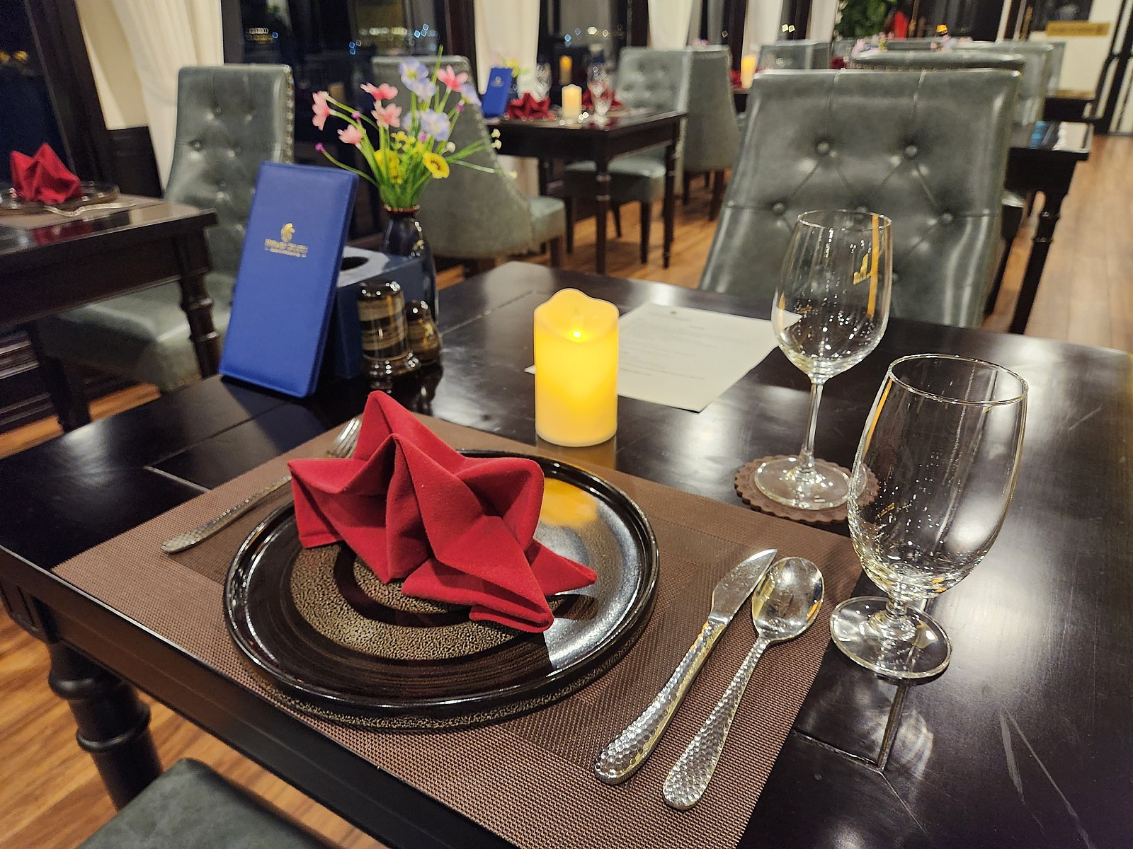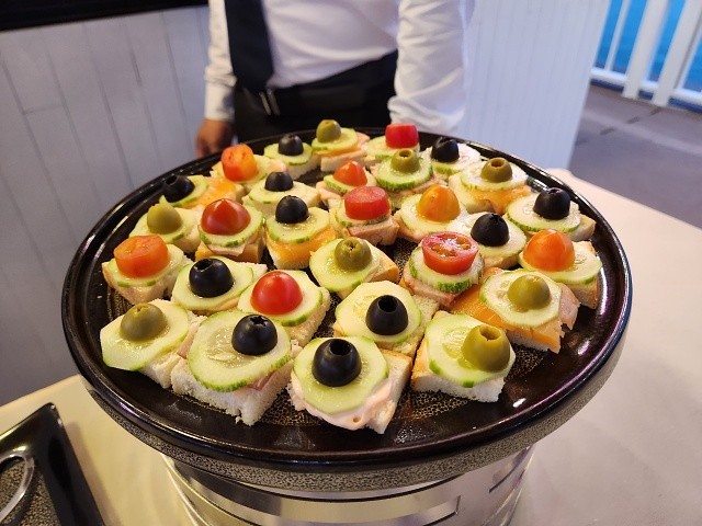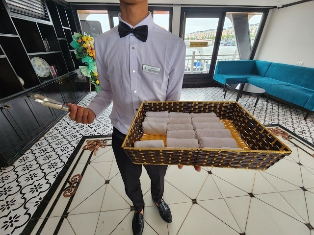 직원의 안내에 따라 크루즈 승선, 왤컴 드링크와 물수건이 제공됩니다. 식당으로 이동해 그룹 인원에 따라 마음에 드시는 테이블 찾아 착석 하시면 됩니다. 이후 예약하신 객실 키를 전달해 드리며, 이후 크루즈 매니저의 크루원들 소개와 일정들을 안내 드립니다.