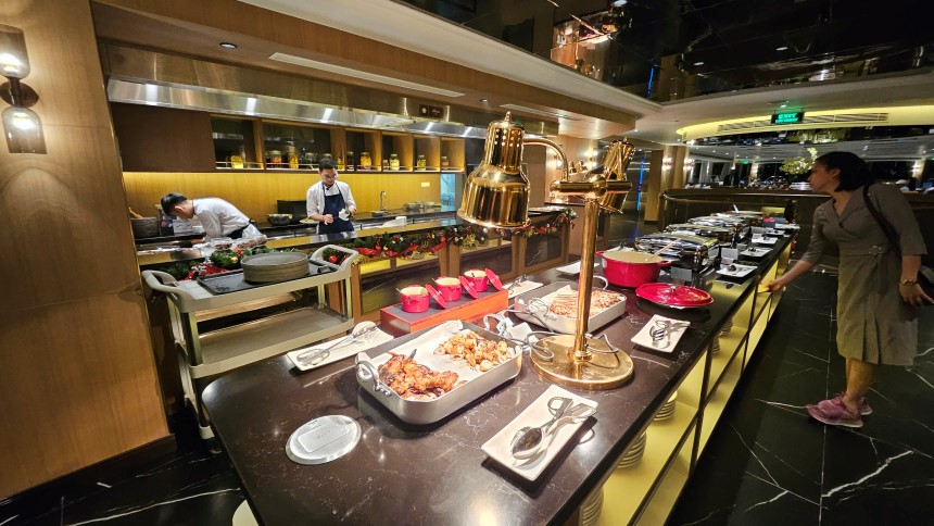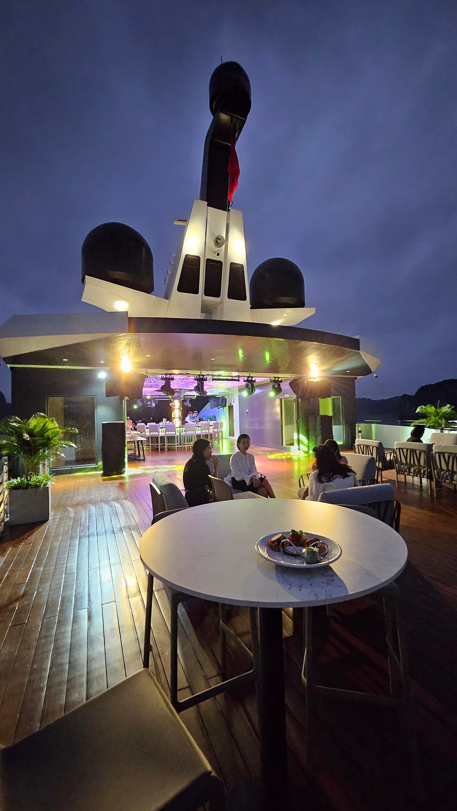 거대한 선상 인피니티풀과 럭셔리 디너 만찬으로