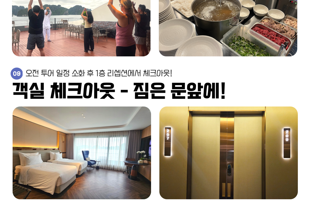악기상 또는 선박의 문제 등으로, 선상 숙박을 대신하여 하롱베이의 호텔 숙박이 제공된 경우에는 환불되지 않습니다.
