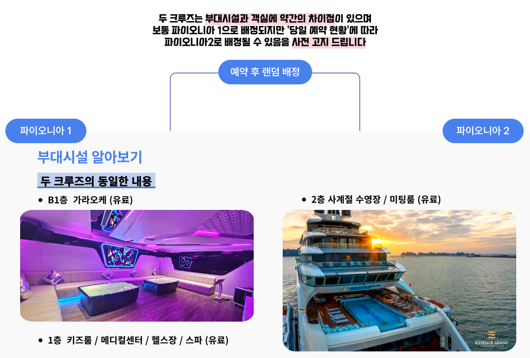 다양하게 즐기는 (구, 에쎈스 그랜드) 1박 2일 일정의 크루즈로 추천드립니다!!