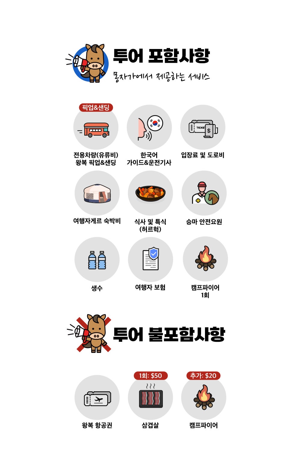 온천,은하수,모래썰매,낙타,보트탑승,승마,독수리,칭기즈칸동상,쇼핑