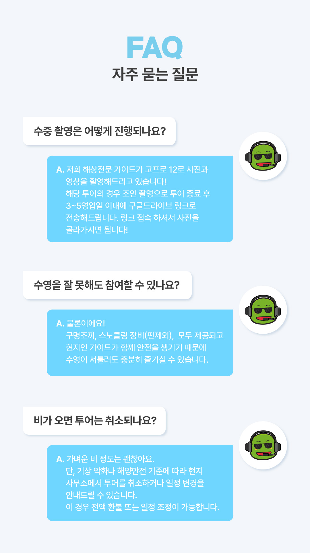 수중 촬영 포함 — 현지 SD카드를 통해 구글 드라이브 링크로 전달드립니다.