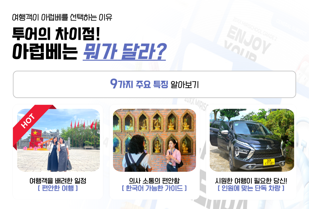 • 베트남 여행사 중 픽업 안내등을 가장 잘 드리는 여행사임을 자부합니다.