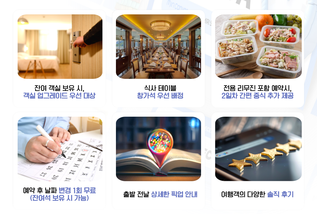• 🔴 여행 기간별 추가 서차지 안내 : 12월 / 24일, 31일 - 성인 1인/7만원, 소아 1인/4만원 추가