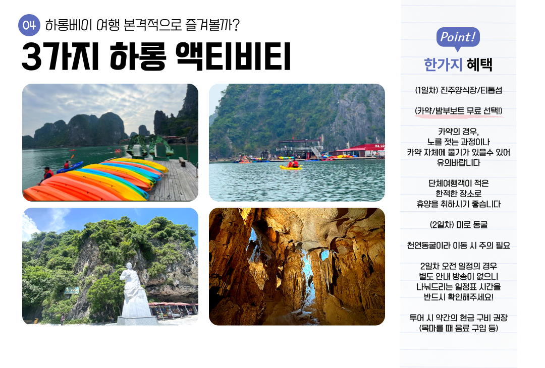 • 동굴투어는 일방통행입니다. 하선 후에는, 무조건 완주하셔야 합니다.