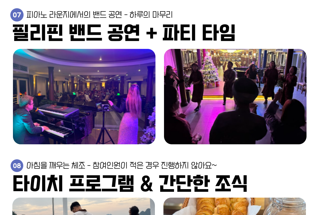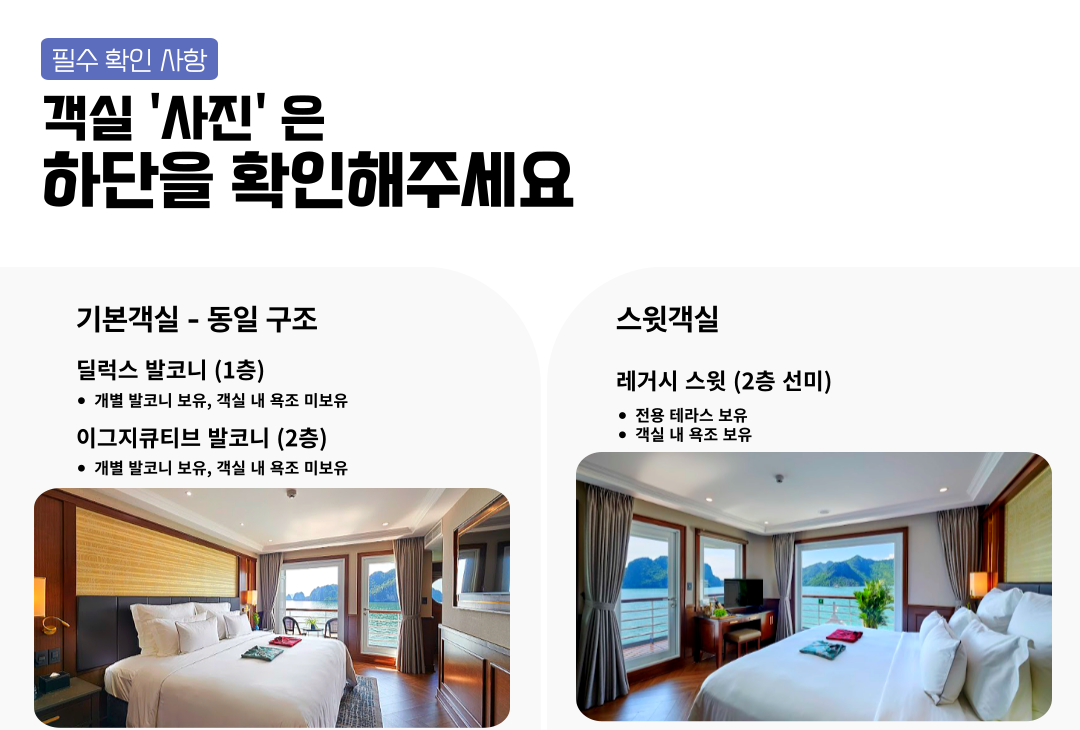 악기상 또는 선박의 문제 등으로, 선상 숙박을 대신하여 하롱베이의 호텔 숙박이 제공된 경우에는 환불되지 않습니다.
