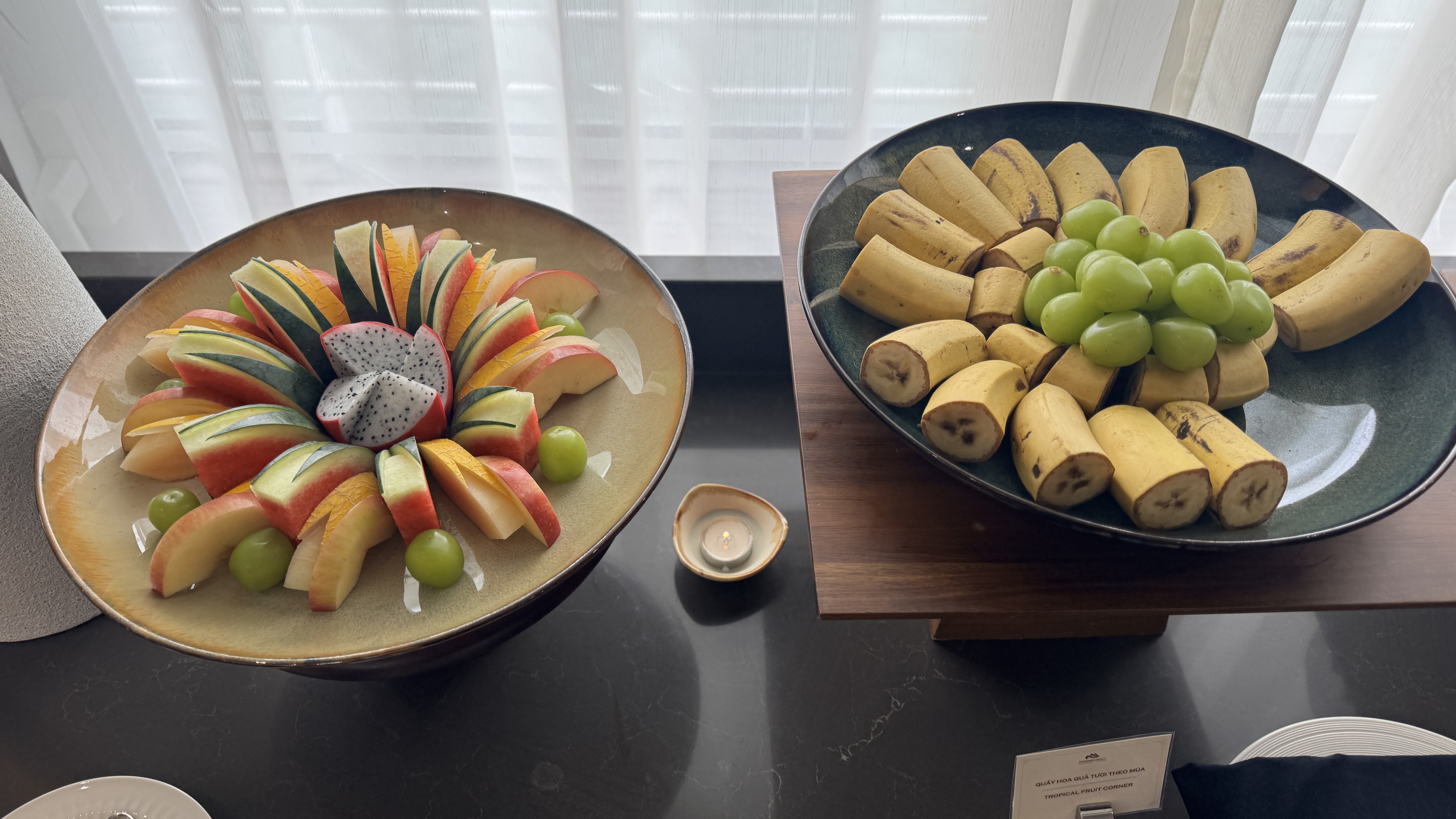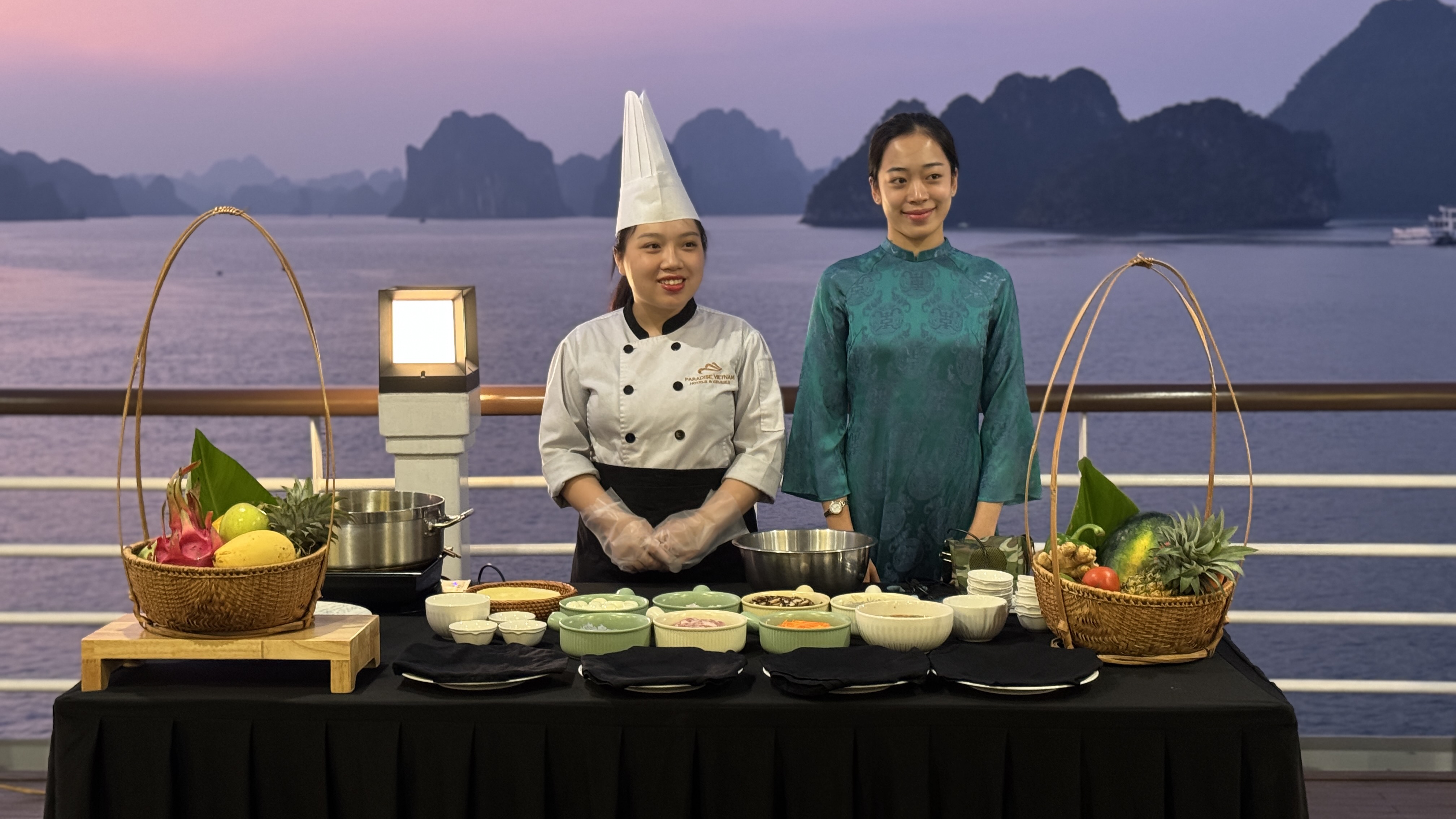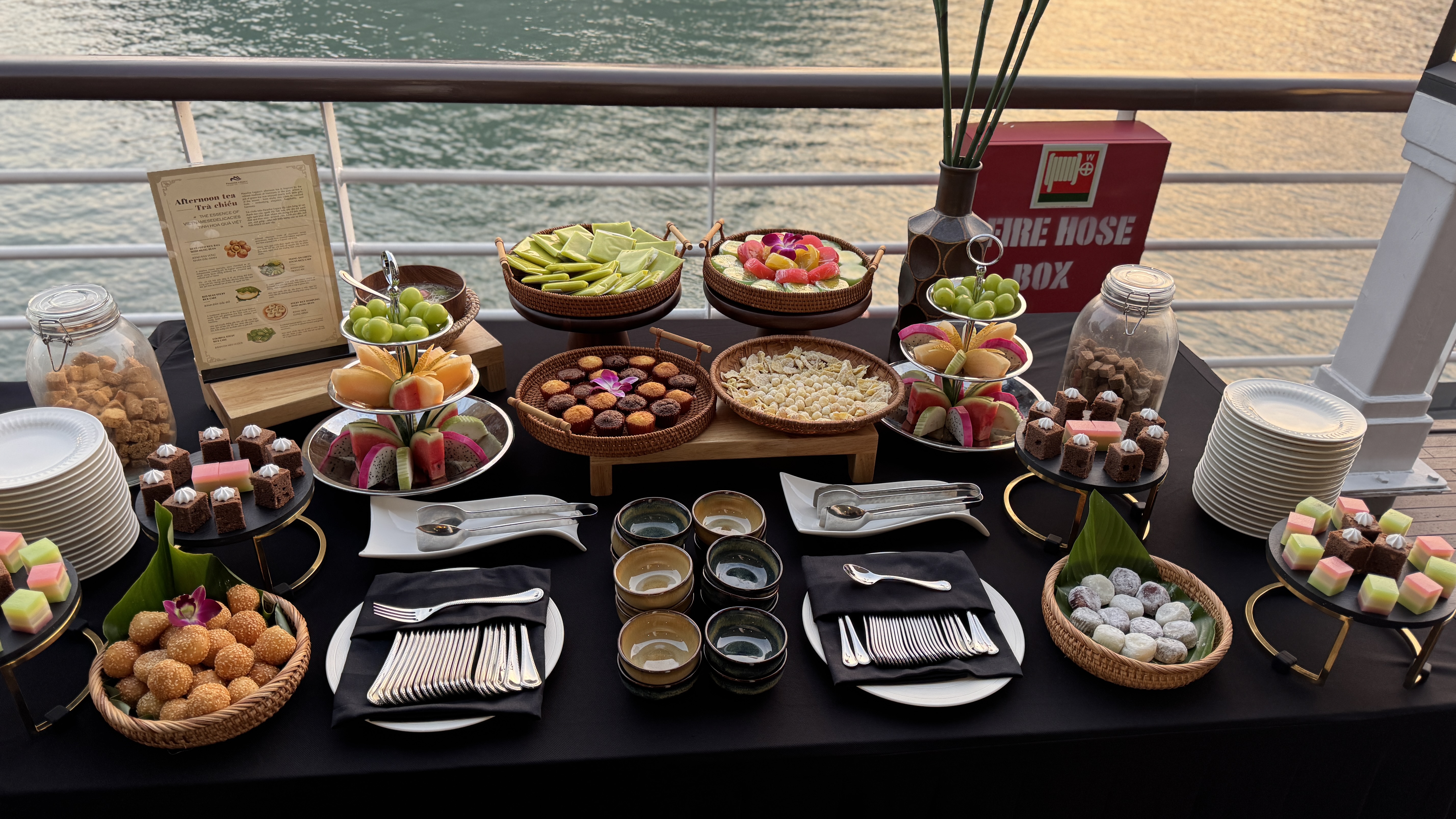 브런치를 즐기신 후 오전 10시경 보트에서 하선을 하고 스피드 보트를 이용, 항구로 복귀합니다. 준비된 전기차를 타고 체크인 했던 호텔로 돌아가며 여정이 끝을 맺습니다. * 아이러브베트남을 통해 파라다이스 레거시 크루즈와 VIP 리무진픽업을 동시에 예약하신 경우, 파라다이스 스윗 호텔에서 부페 런치 또는 간단한 점심 도시락을 추가로 제공해 드립니다. (단, 왕복 리무진 포함된 예약시) 11시경 부터, 준비된 점심을 드신 후, 크루즈 직원들의 안내에 따라 리턴 리무진을 타시면 투어 일정이 종료 됩니다. 리턴 리무진은 정오에 출발하며, 하노이 도착 예정 시간은 약 오후 2시 30분 정도 입니다. 아래 사진은 호텔에서 제공되는 간단한 뷔페 입니다. 복귀 차량 배정은, 직원들이 안내드립니다