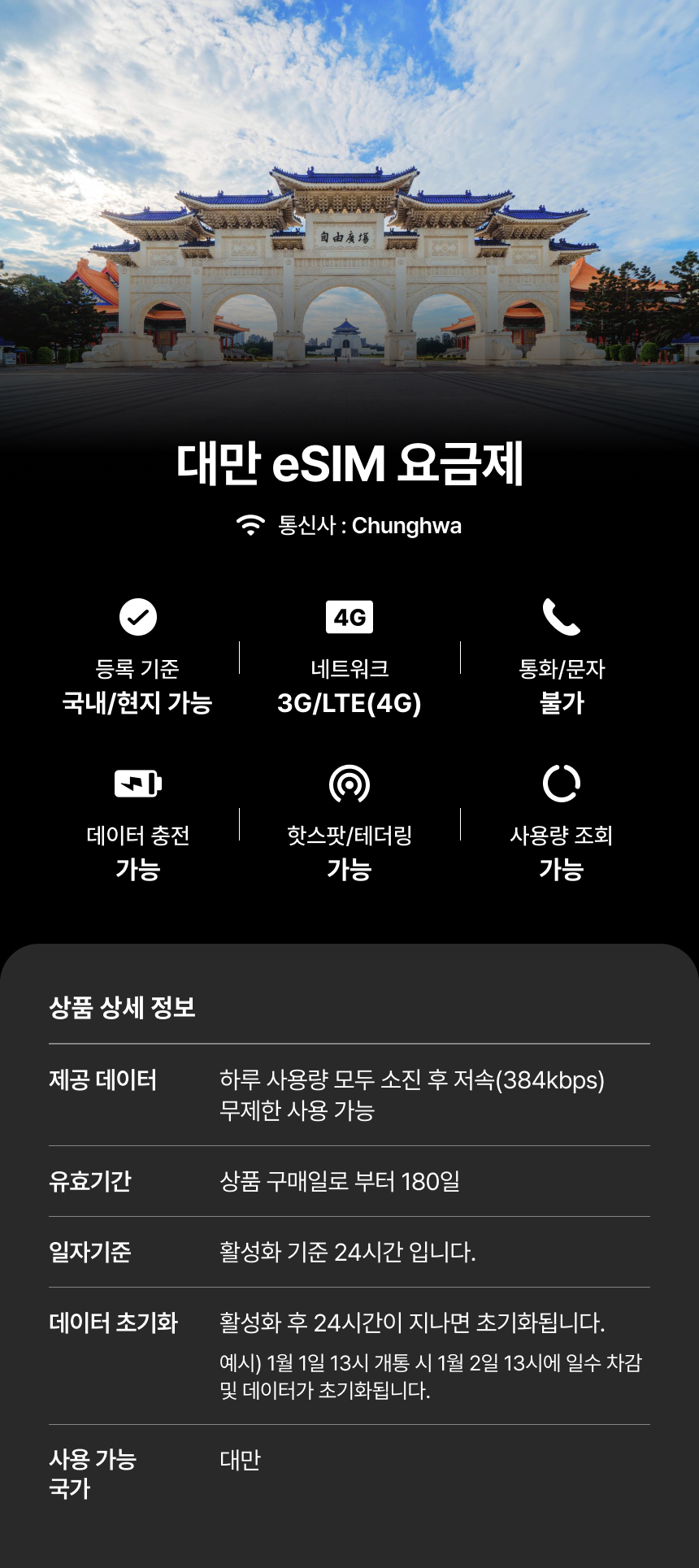 [대만] eSIM 데이터 무제한 (4GB)