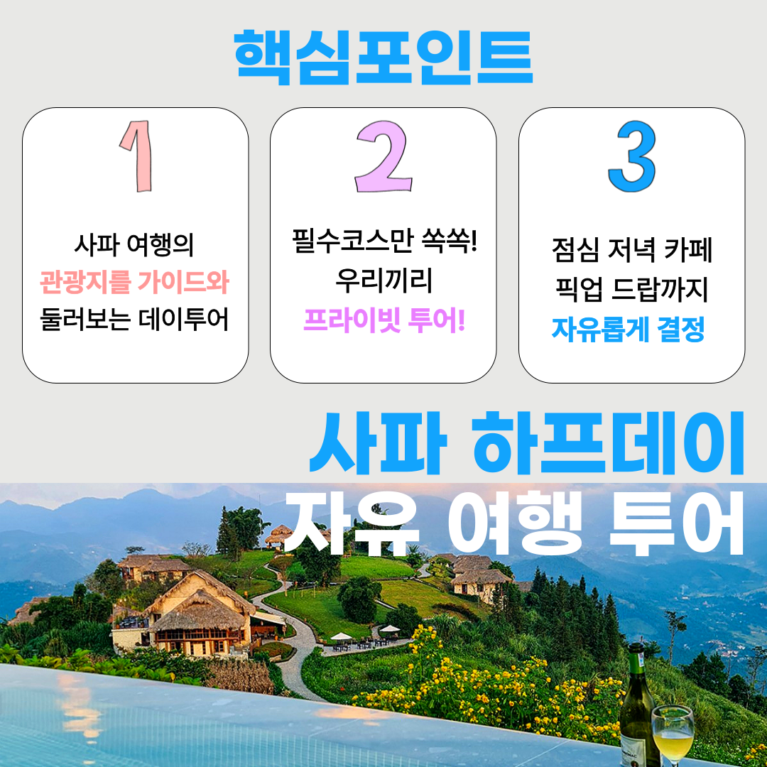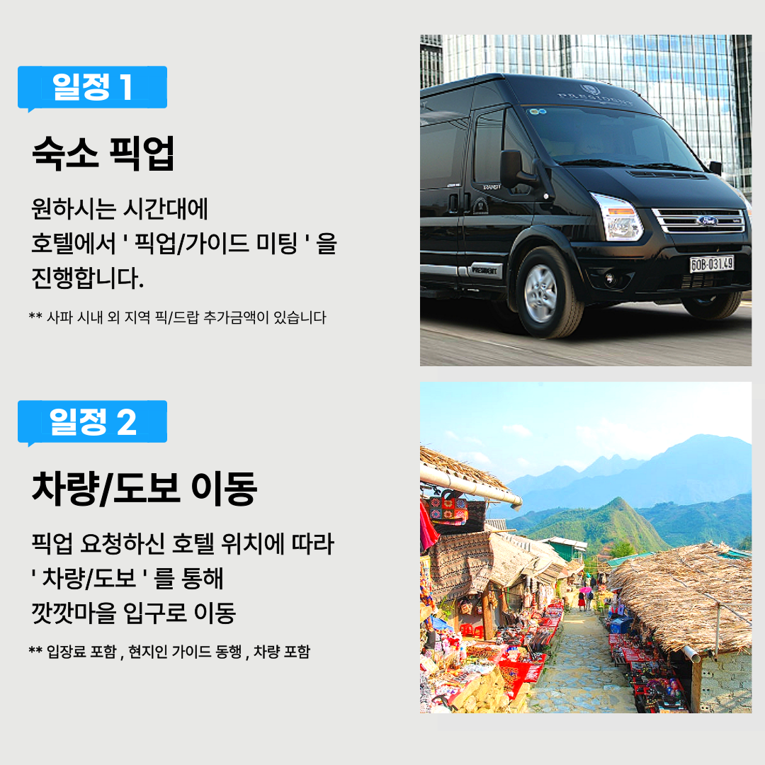 - 사파 시내 외 지역 픽/드랍 시 추가요금이 붙습니다