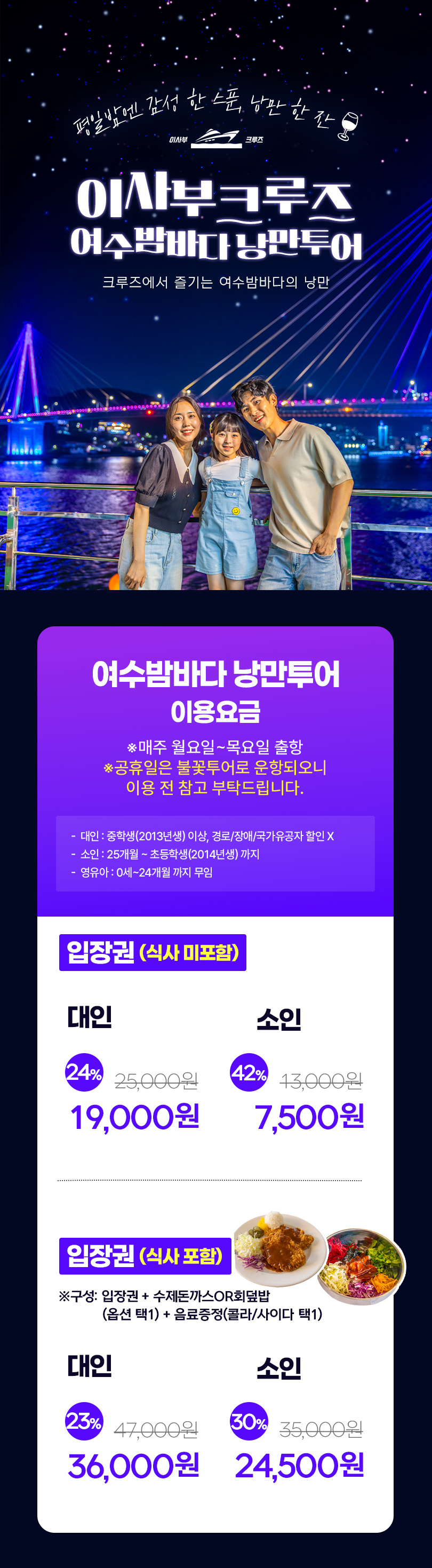 ※ 여수시민 확인이 불가한 경우, 현장에서 정상가 기준 추가 결제가 요청될 수 있습니다.