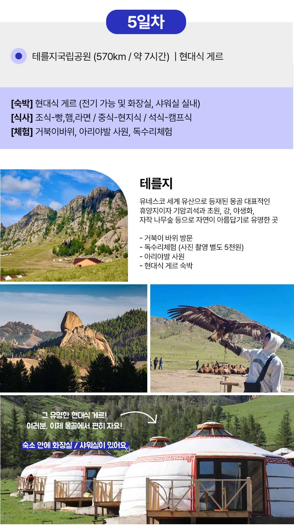 • [5day] 몽골의 대표 휴양지 테를지 국립공원 (여행자 게르)