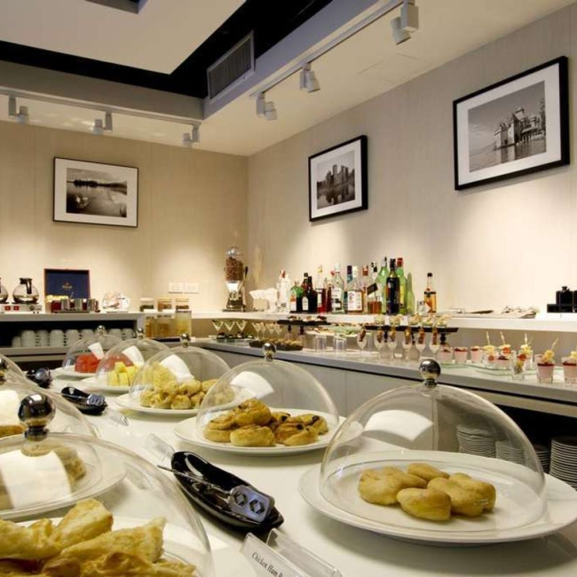 일반 비즈니스 클래스 고객과 같은 공간을 이용하며 뷔페 음식(샐러드, 샌드위치, 빵, 과일 등)이 제공됩니다.
