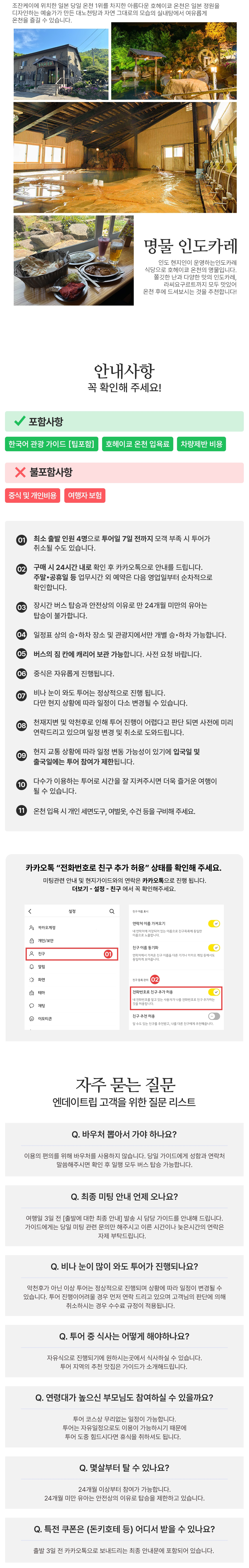 현지 교통상황과 기상악화 이유로 일정이 변경 또는 취소될 수 있습니다.